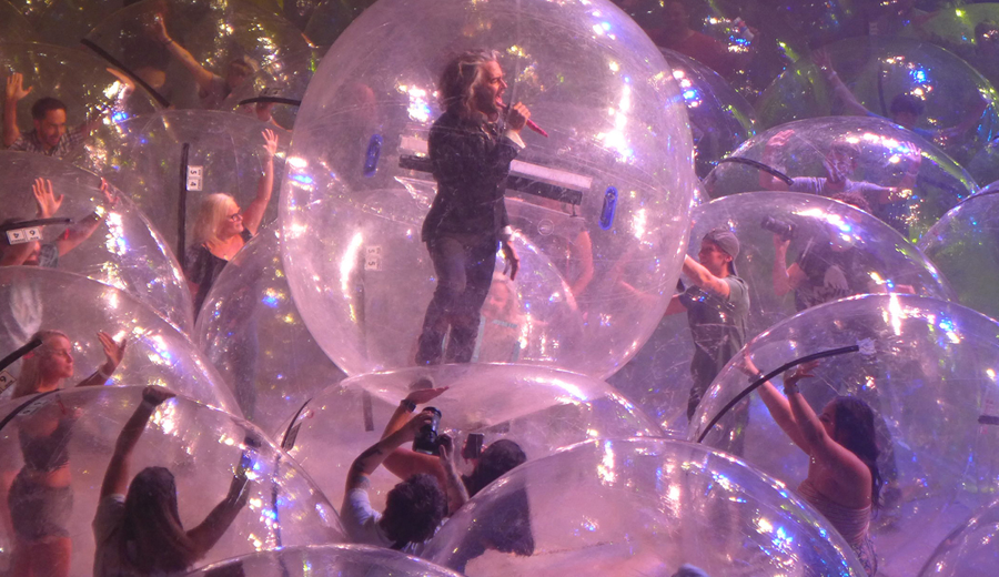 As duas apresentações de Flaming Lips aconteceram Oklahoma, nos Estados Unidos, e contaram com cerca de 100 bolhas, com a capacidade máxima de até três pessoas.